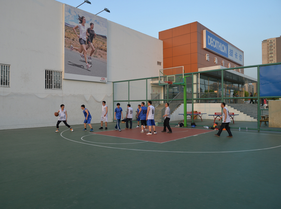 公司篮球队定期进行篮球训练
