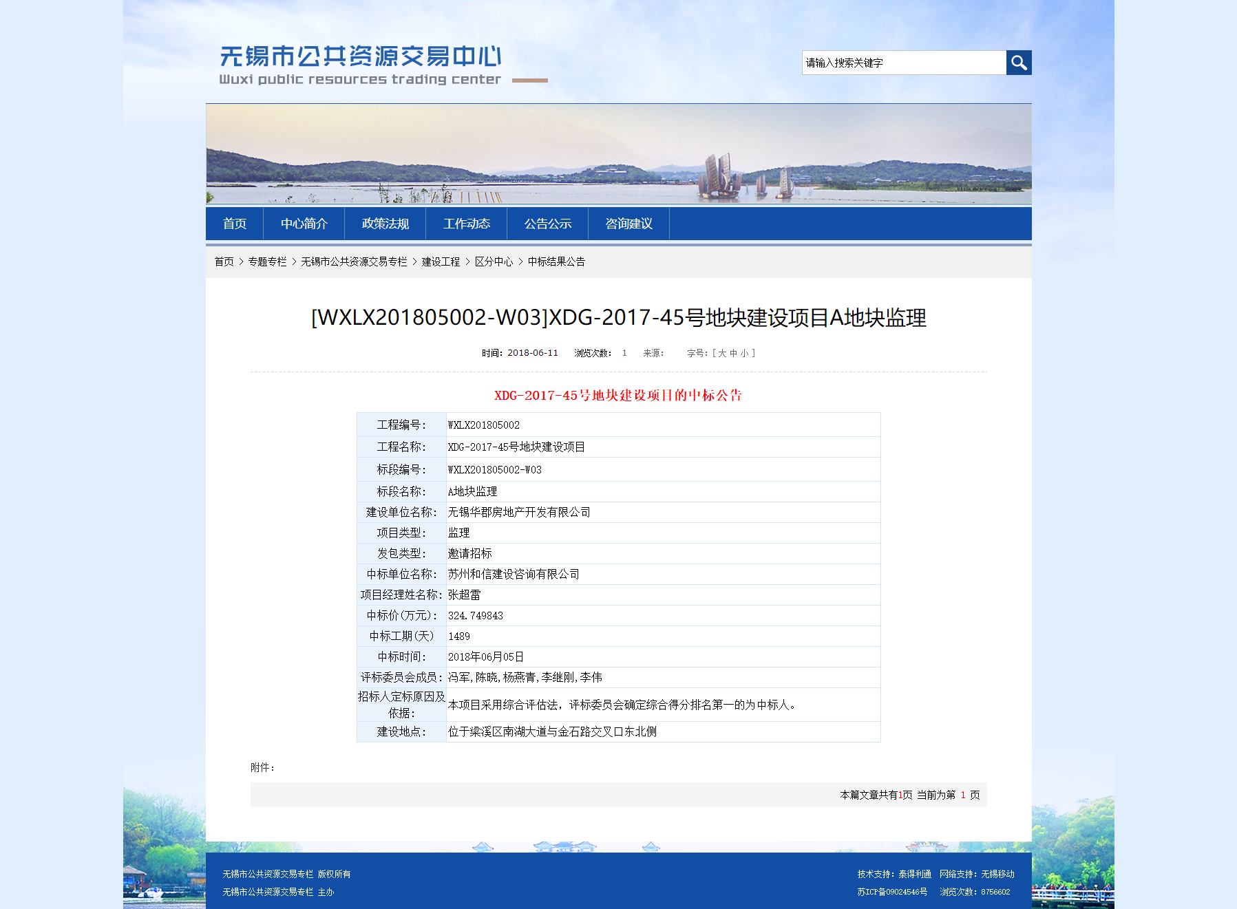 中标结果公示A地块监理