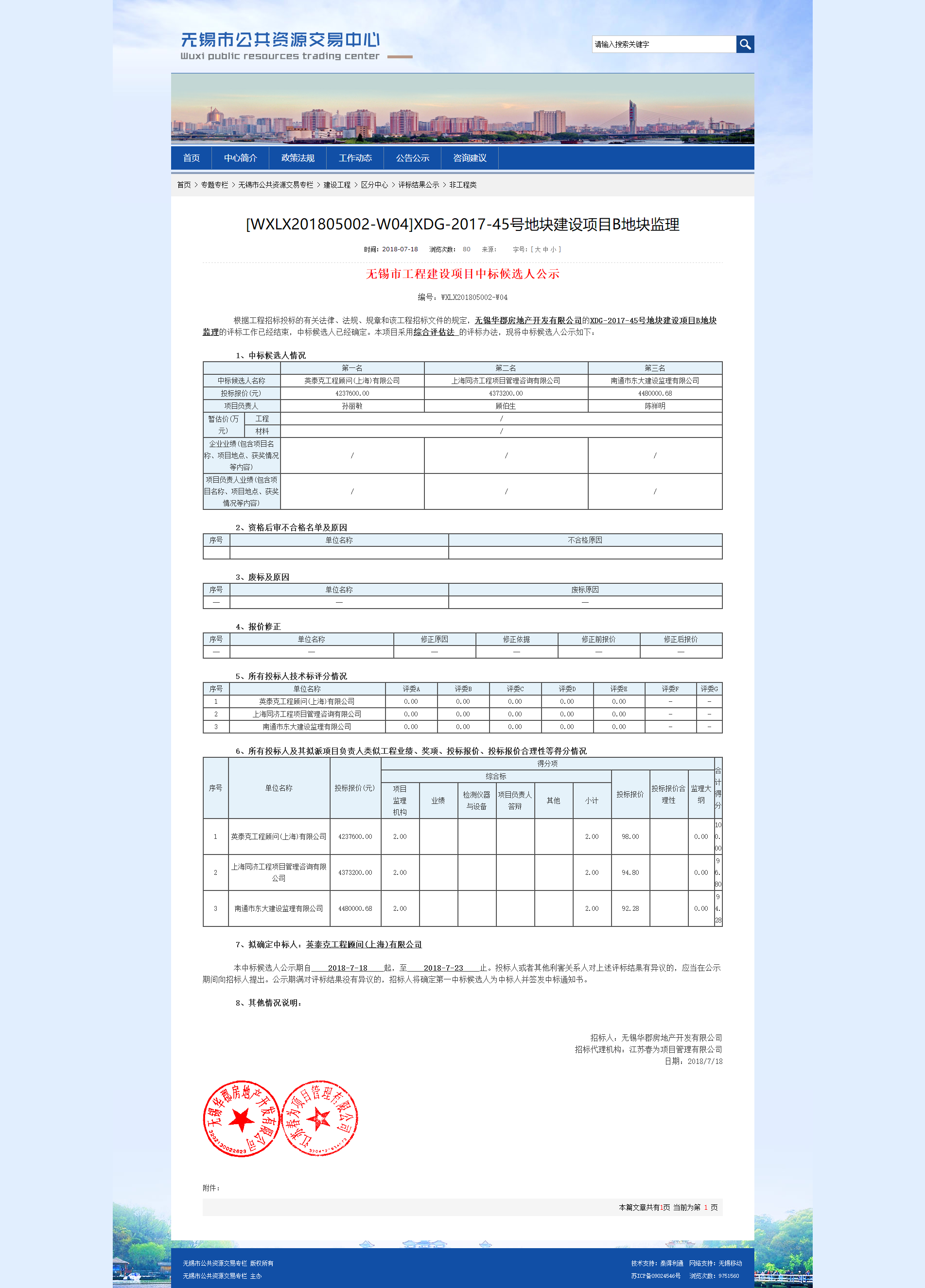 中标公示B地块监理