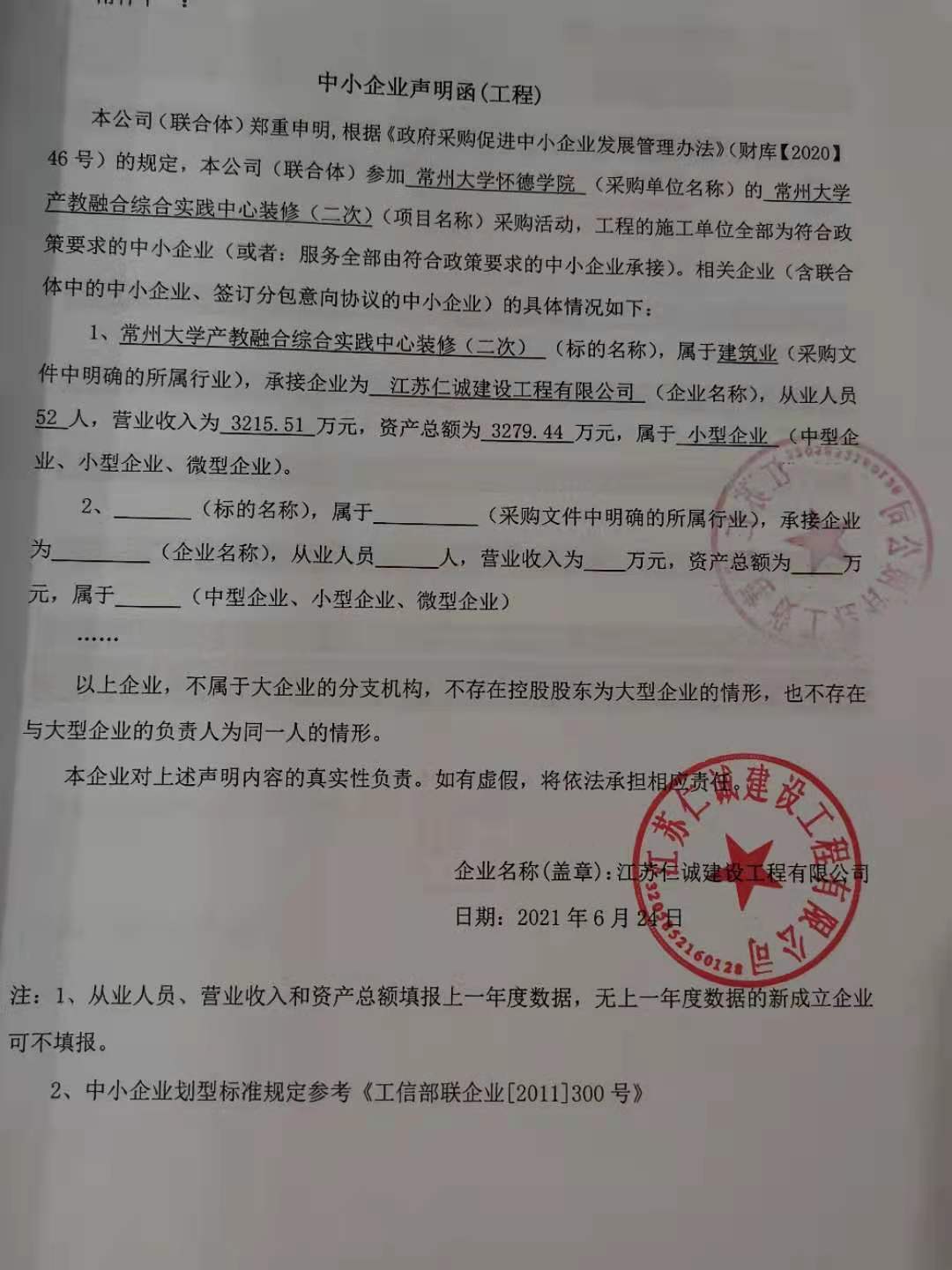 中小企业声明函