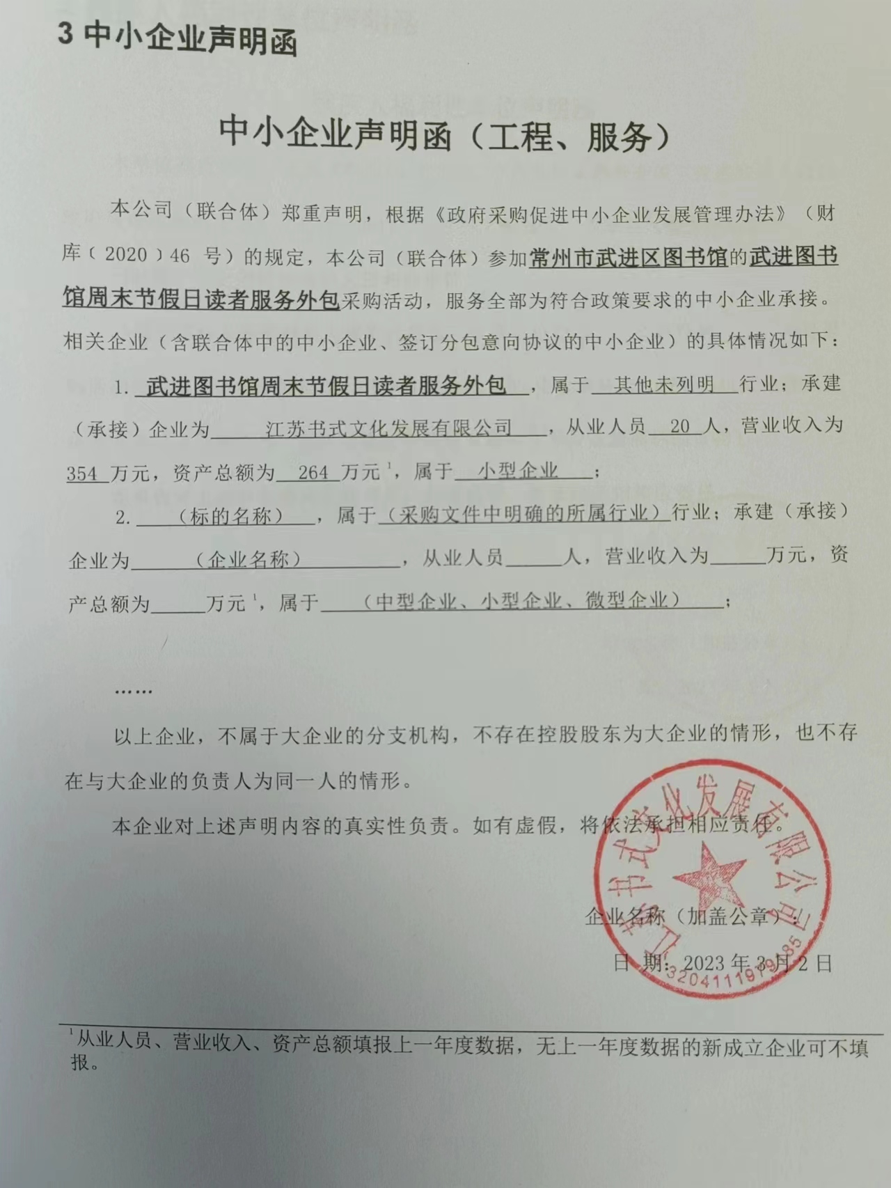 武进图书馆周末节假日读者服务外包中标(成交)结果公告