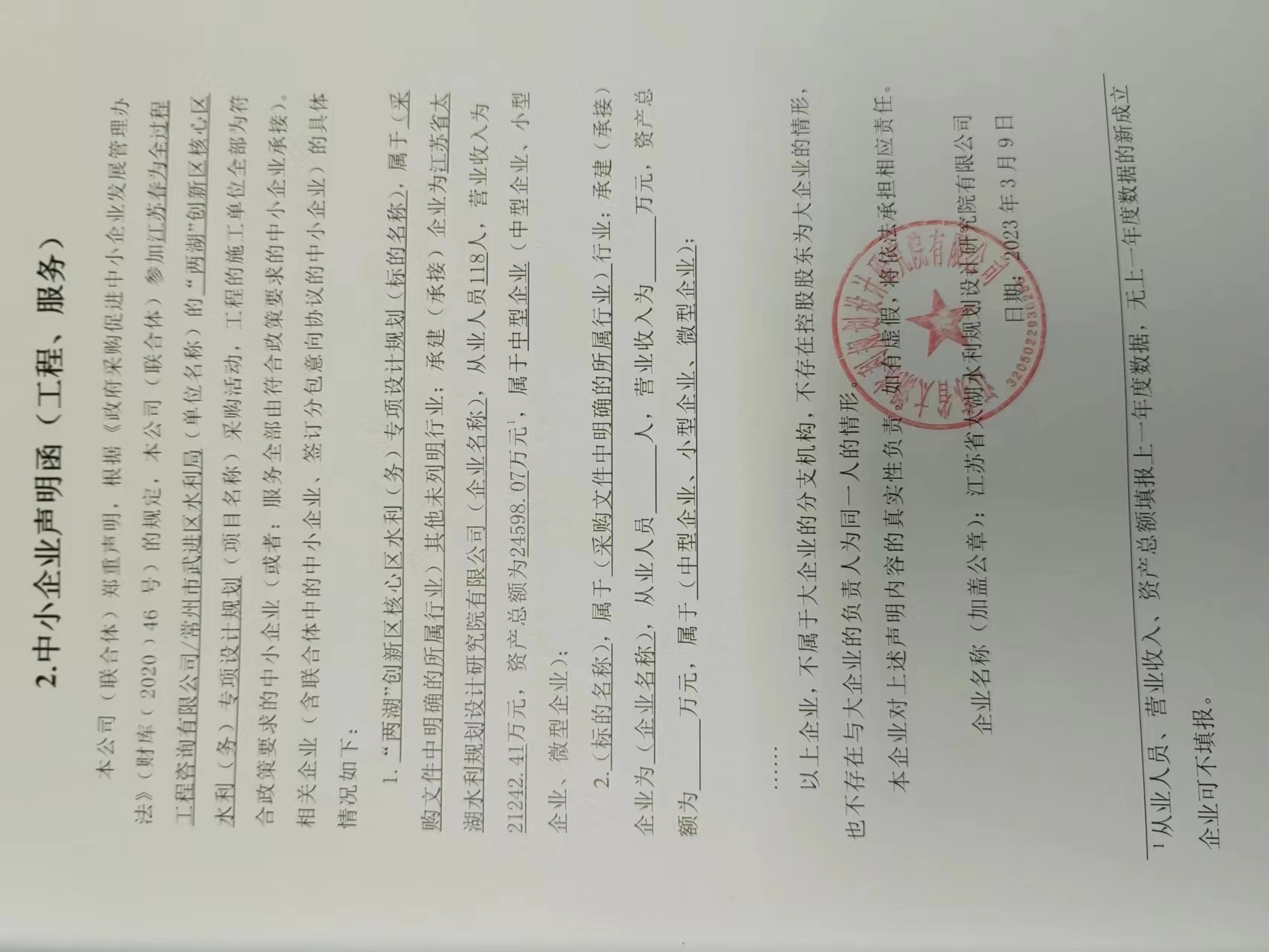供应商名称:江苏省太湖水利规划设计研究院有限公司